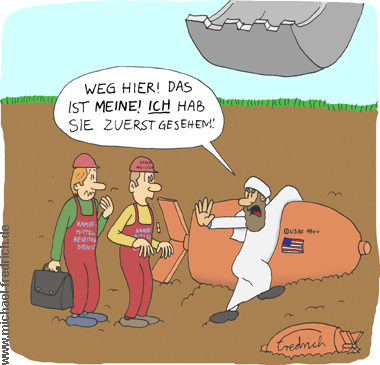 Zurück mit einem Bomben-Cartoon
